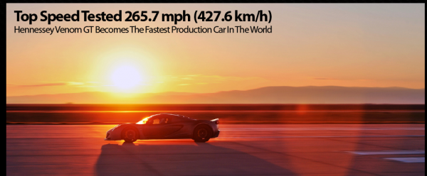 April 6th, 2013 by Robert[VIDEO] Venom GT Runs 265.7 MPH!!! Now the Fastest Production Vehicle You Can Buy.